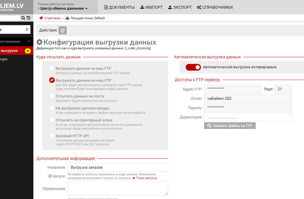 Сценарий применяется когда система поставщика по каким-либо причинам не может взаимодействовать с внешними ресурсами. Конфигурация VEIKALIEM.LV системыОбычно производится нашими специалистами. Под нужные типы данных создаются соответствующие FTP шлюзы. Конфигурация ничем не отличается от обычного обмена через FTP/SFTP. Установка утилиты на компьютер поставщикаЗагрузка и распаковка