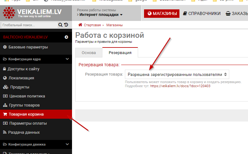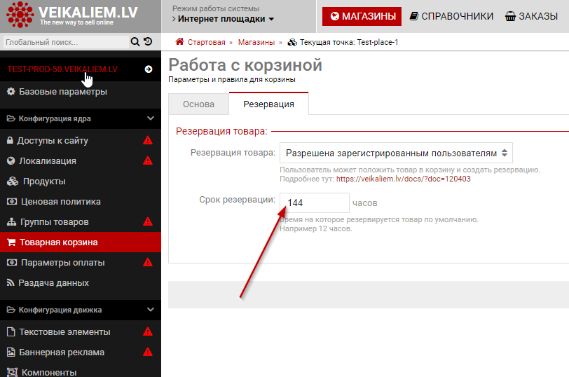 Ограничение времени резервацииЧтобы ограничить срок на который происходит резервация товара клиентом вы можете указать время резервации по умолчанию в конфигурации сайта. Резервации в административной части