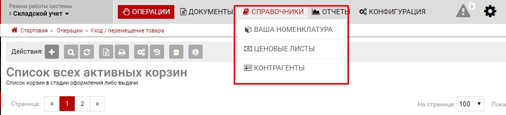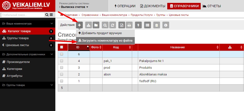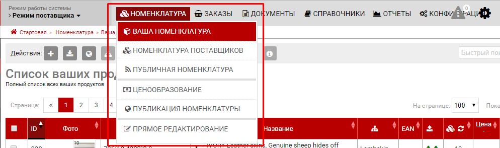 В зависимости от режима системы в котором вы находитесь, ваш каталог номенклатуры в верхнем навигационном меню может отбражаться в 2 вариантах :