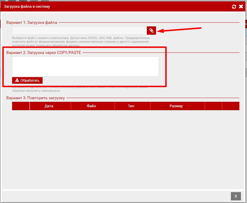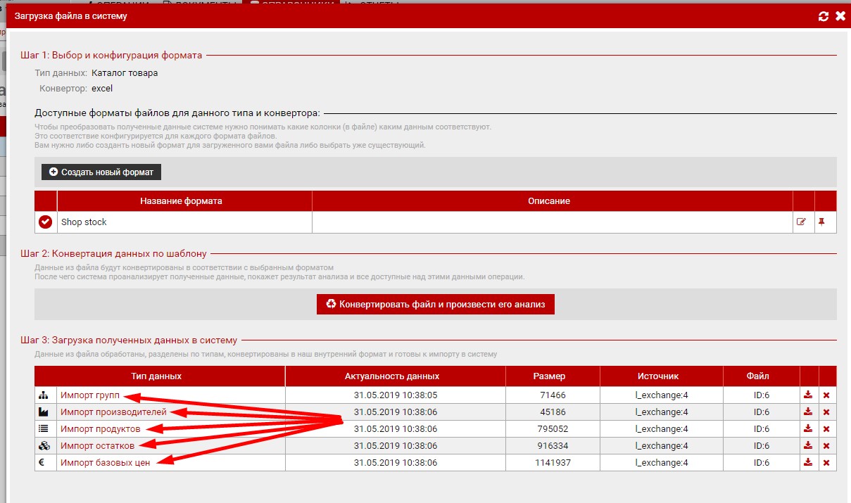 Для загрузки посредством Excel/Csv/Xml файлов необходимо: