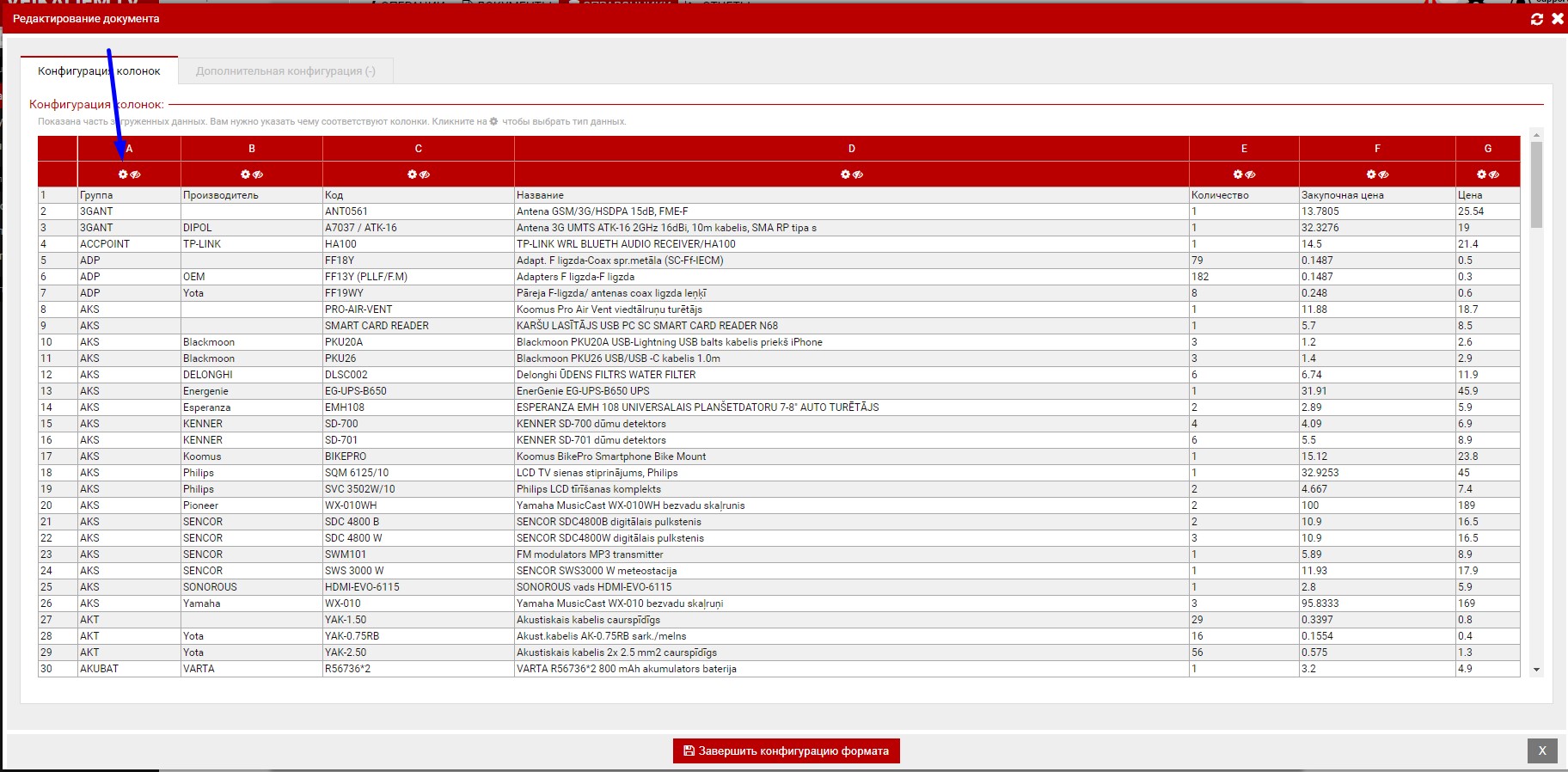 6) Когда все колонки настроены, перехоим в вторую закладку "Дополнительная конфигурация"