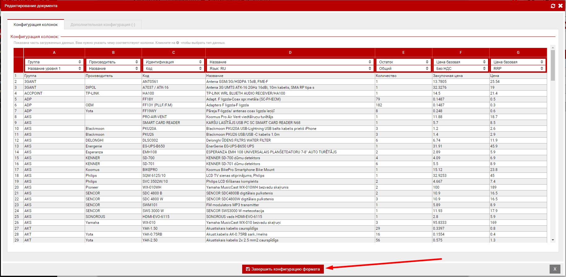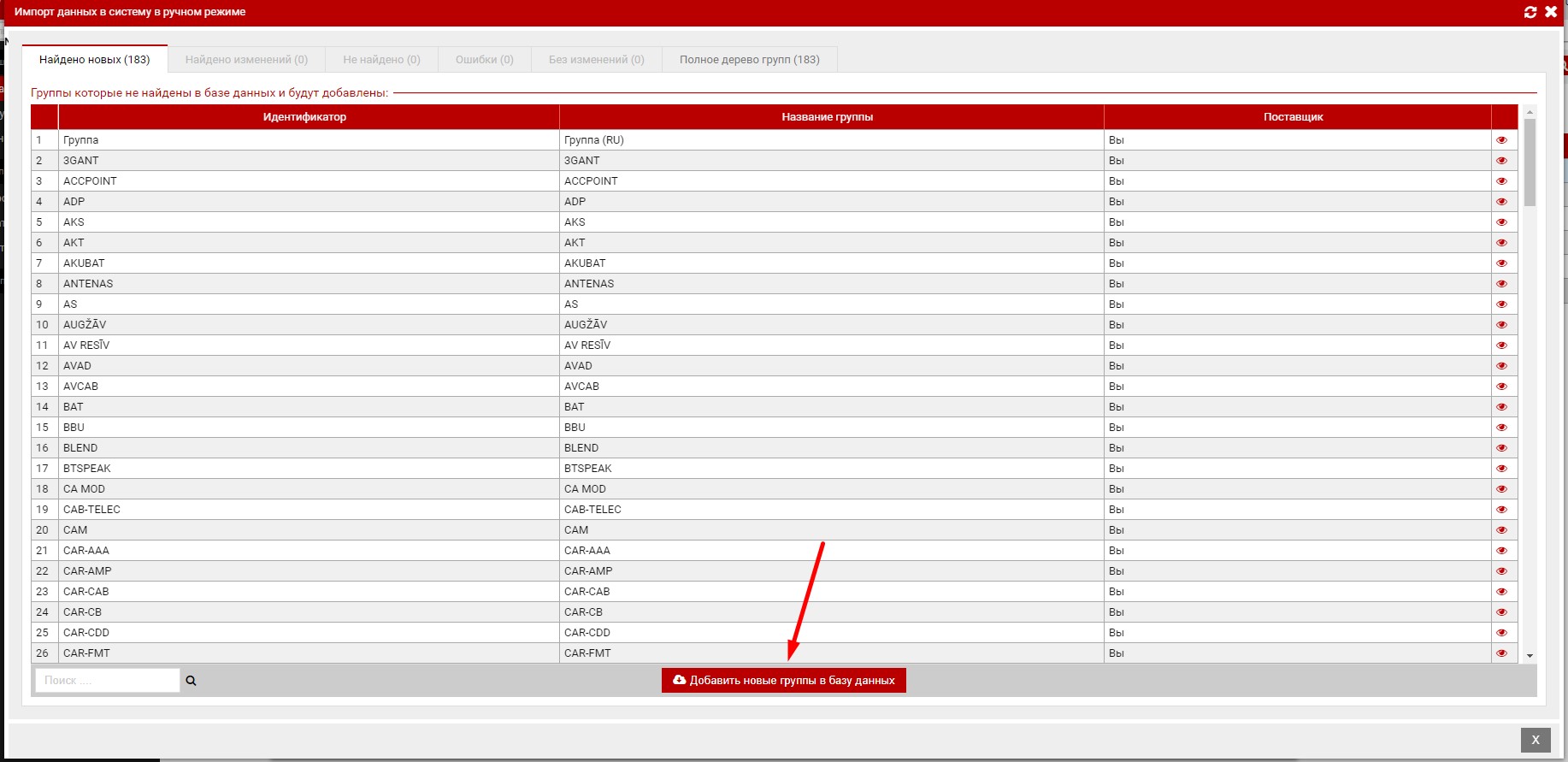 10) В новом окне "Добавить новые группы/производителей/продукты/цены/остатки в базу данных