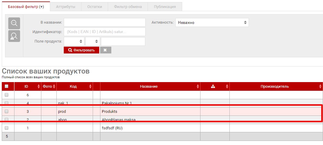 Для удаления продукта необходимо перейти в раздел с вашей номенклатурой.