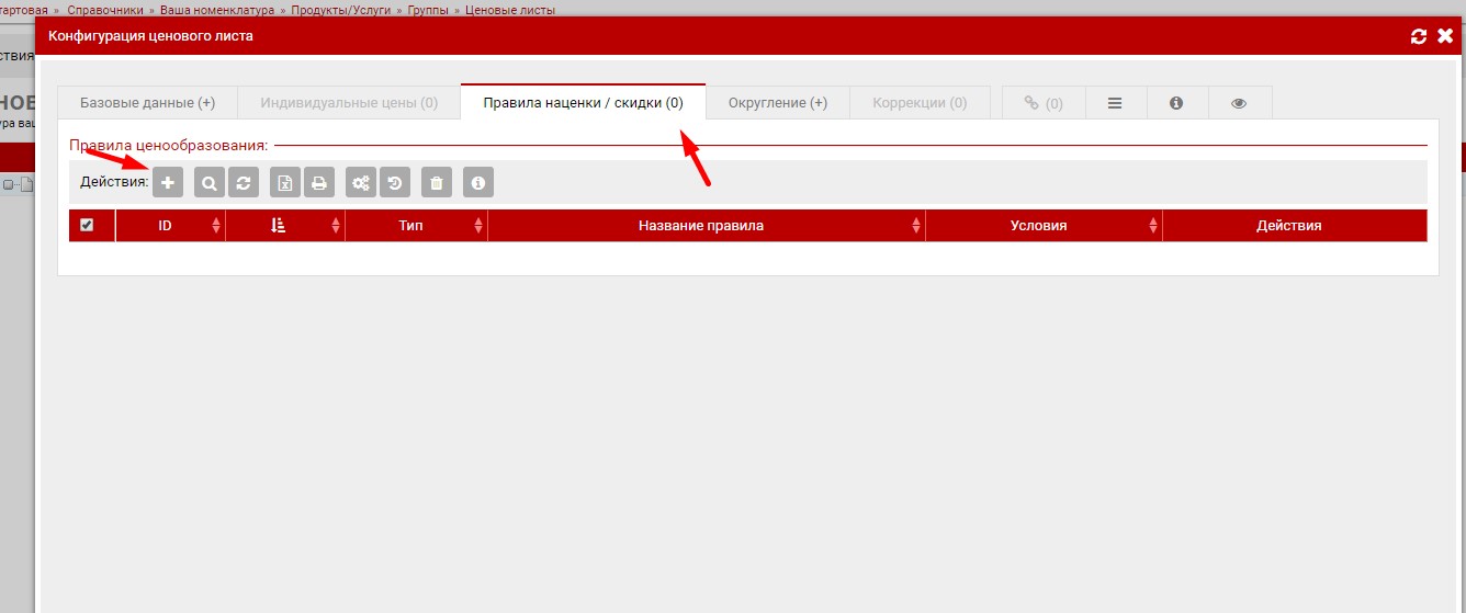 Создание ценового лист/правила