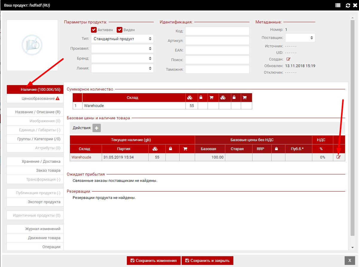 Для этого, открываем карточку продукта, открываем нужную партию товара и жмём "Редактировать"