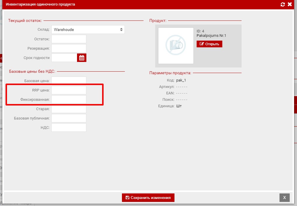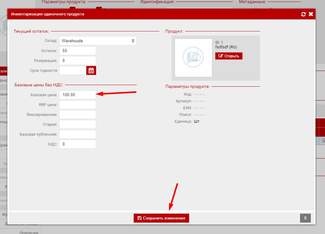 Так же базовую цену можно установить или сменить для уже принятого товара.