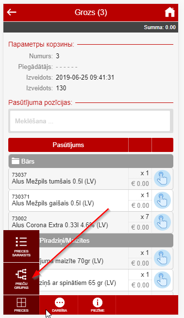 С группами товара вы работаете либо в списке товара поставщиков либо при добавлении товара из экрана корзины. Группы вы вилдите в том виде