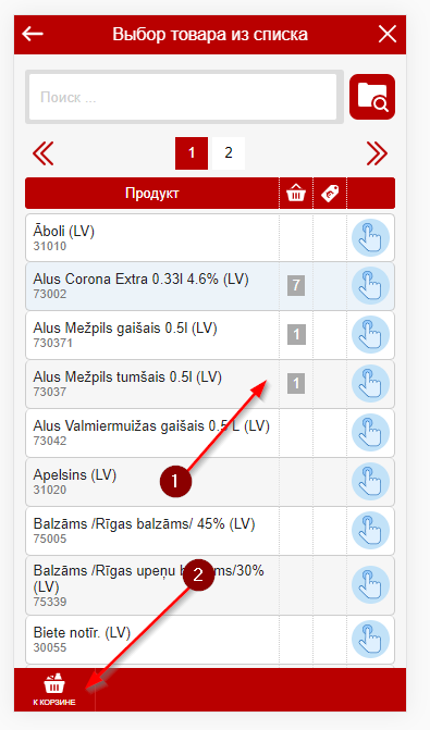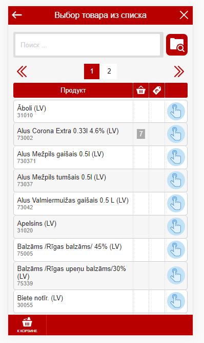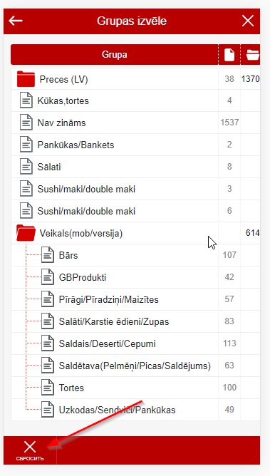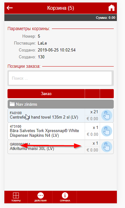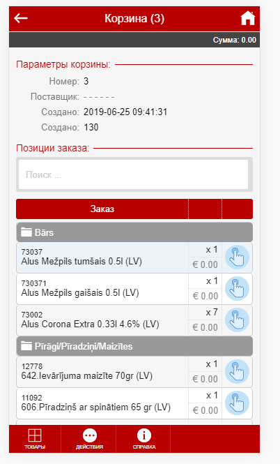 Изменение кол-ва товараНа любом из экранов где вы видите список товара вы можете используюя Swipe пальцем по экрану либо справа налево либо слева направо менять кол-во продукта в корзине или заказе. Удержание пальца при Swipe на продукте более 3 секунд вызвает добавление сразу десятка товара (или шага если это настроено) Товарные группы и фильтрация