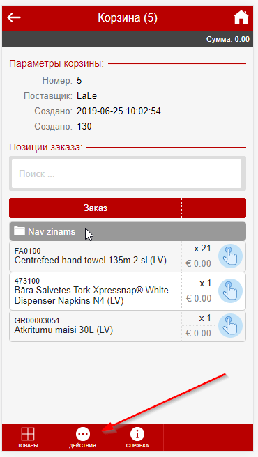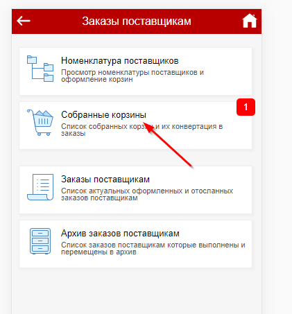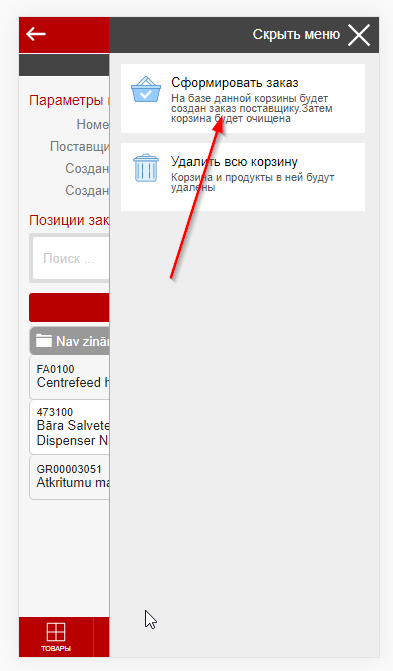 После того как корзина собрана заказ нужно отослать поставщику. |