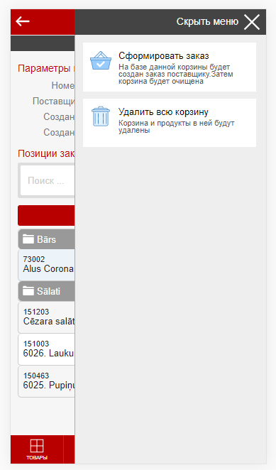 Заказы поставщикамДанный документ описывает процесс формирования заказа поставщику через мобильное приложение. Принцип работыОсновные шаги при формировании заказа таковы: