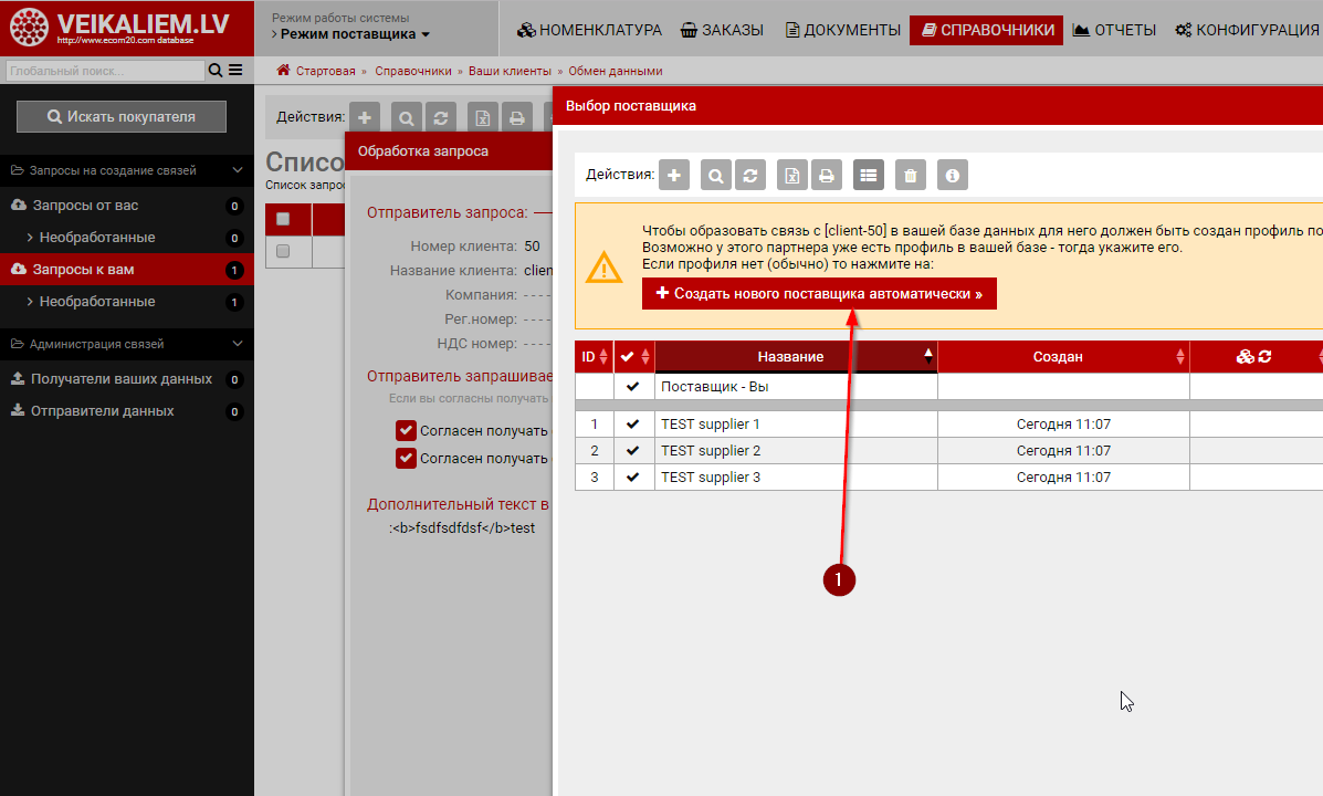 Затем скорее всего система вас попросит выбрать - создать нового поставщика автоматически либо выбрать из списка уже существующих. Обычно вы создаете нового поставщика однако бывают ситуации когда у вас в базе данных уже есть этот поставщик. На этом все, обмен выбранными данными происходит автоматически с интервалом который устанавливает сама система в зависимости от типа этих данных.