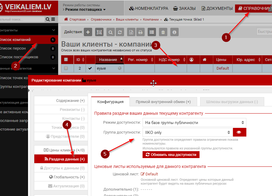 сценарии несколькими способами один из которых - через группы доступности. Отсылка каталога вручнуюОбратите внимание на (4) - важно правильно указать какие именно данные вы раздаете. Ваши данные либо публичные данные. А это в свою очередь уже зависит от того как вы ведете номенклатуру. |