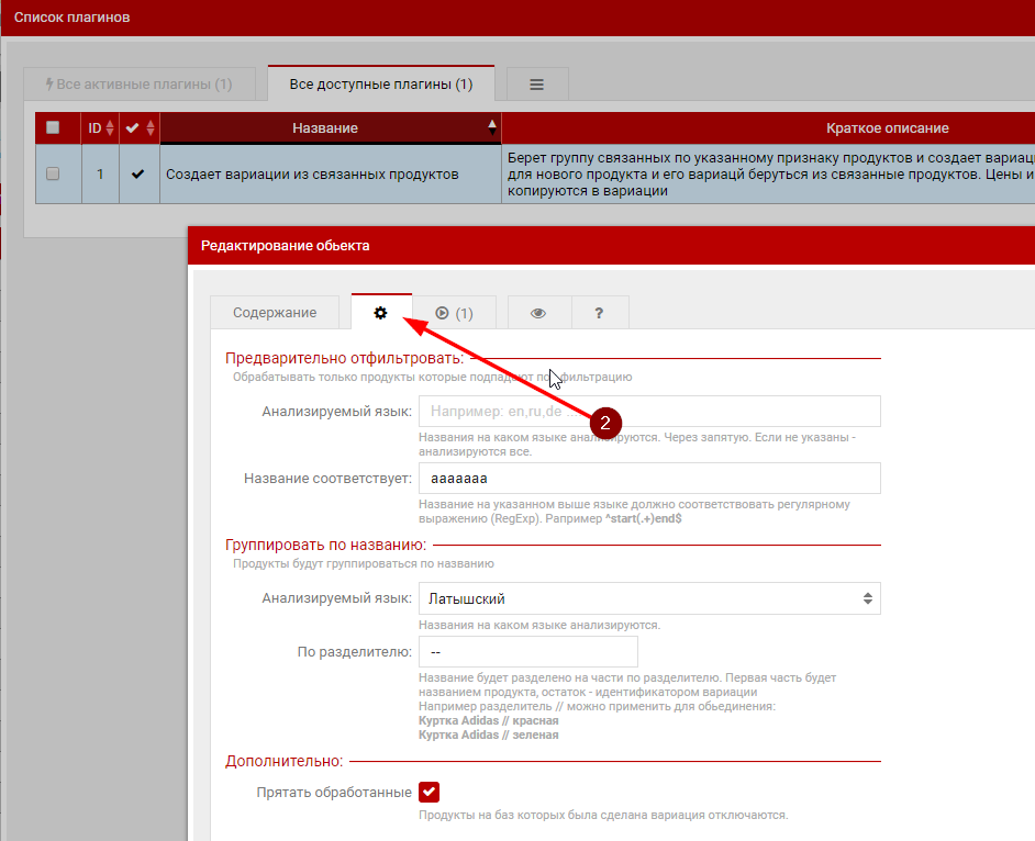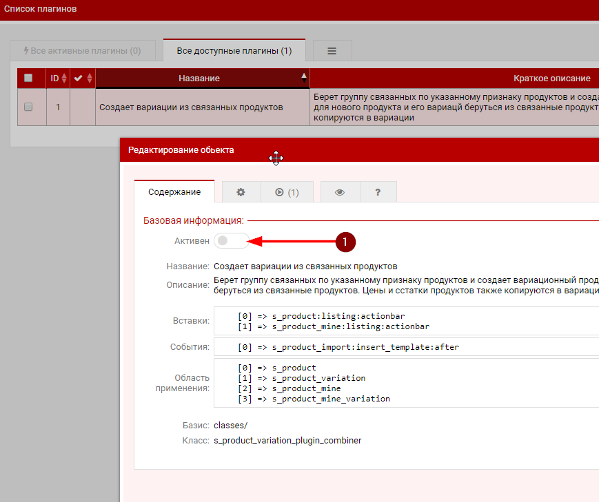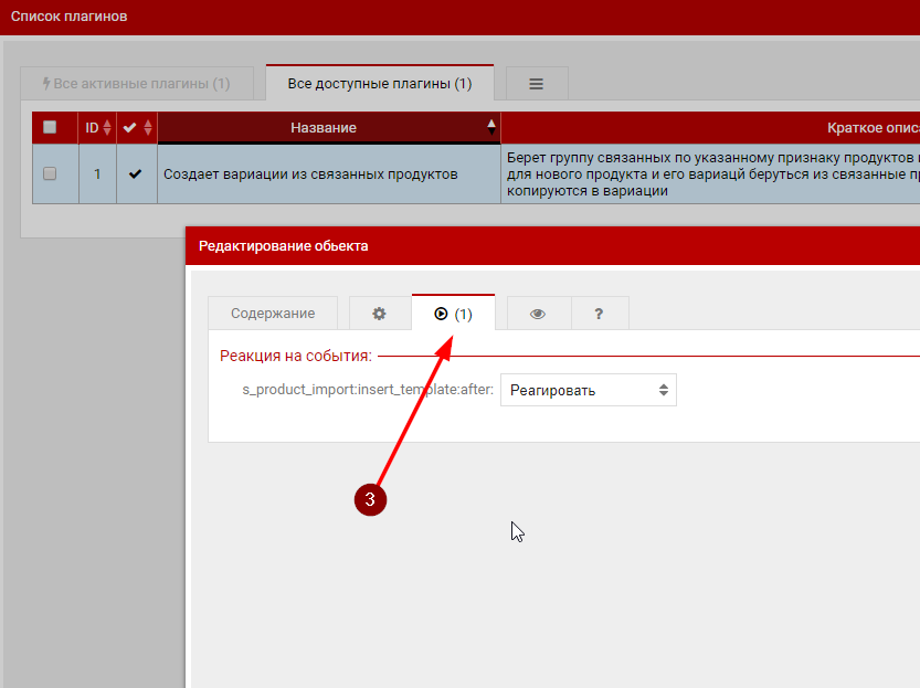 Чтобы активировать плагин нужно его открыть и отметить "Активен" (1). После этой операции вызов плагина появиться в интерфейсе в предусмотренных для этого местах (4).