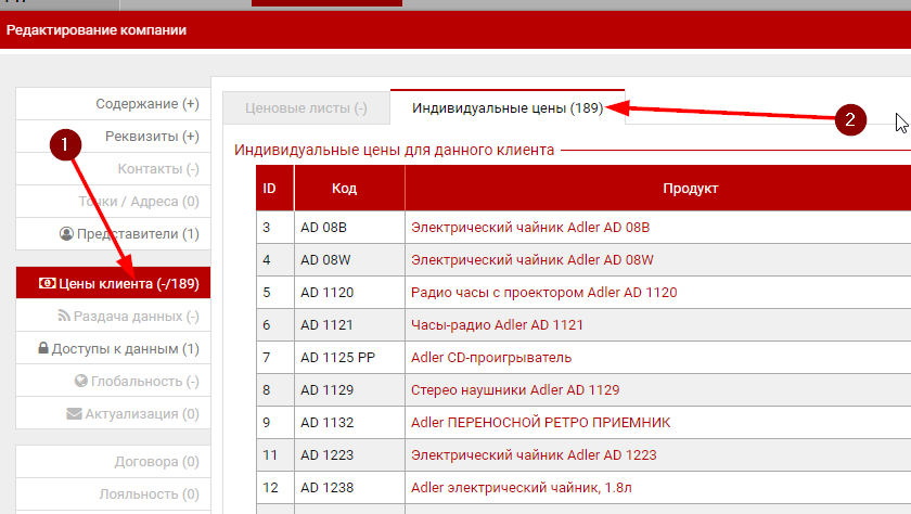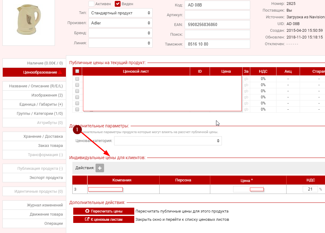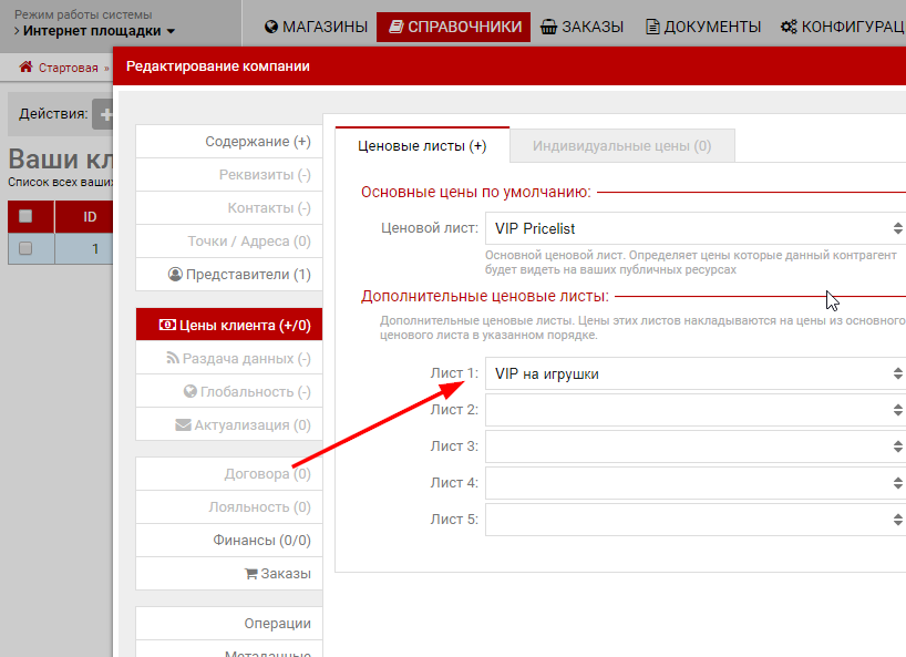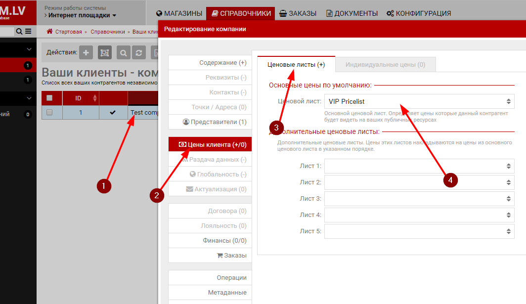 Присвоение цен контрагентамОдна из стандартных задач при работе торговца является использование различных ценовых политик для разных клиентов, групп клиентов, публичных ресурсов. Ниже рассмотрены стандартные сценарии дефиниции ценообразования для различных клиентов. Присвоение базового ценового листаПо базовому ценовому листу для клиента рассчитываются цены которые тот видит в B2B, B2C, при создании документов и счетов на этого клиента. Устанавливатеся базовый ценовой лист в профиле клиента. Базовый ценовой лист по умолчанию также виден в списке клиентов. Дополнительные ценовые листыЕсли для клиента нужно задать более точное ценообразование на некоторые условия (например группы товара) и вы не хотите делать отдельный регулярный ценовой лист то вы можете создать отдельный ценовой лист только на нужную часть каталога и присвоить его клиенту как дополнительный. В таком случае все цены для клиена будут сперва рассчитаны по базовому листу а затем сверху будут наложены цены дополнительного листа переписав базовые. Дополнительные листы присваиваются там-же где и базовые. Индивидуальные цены на продукты для клиентовПри необходимости вы можете задать индивидуальные цены на конкретные продукты конкретным клиентам. Мы считаем данный механим неканоничным так как он не подлежит автоматизации и реализован он нами исключительно для совместимости с другими внешними системами. |