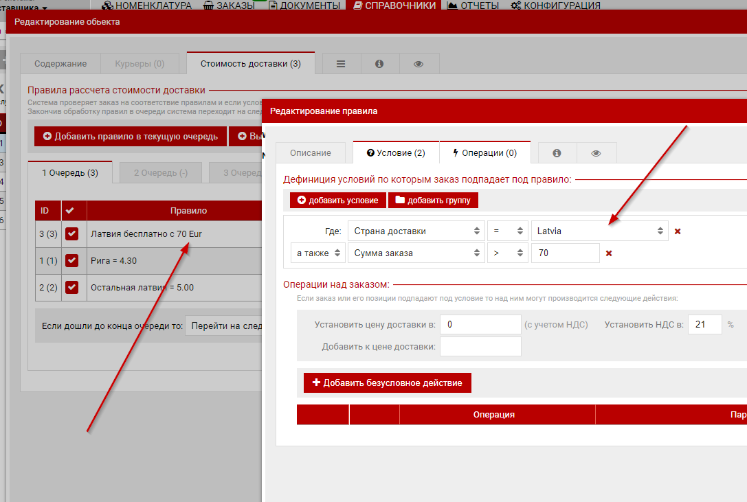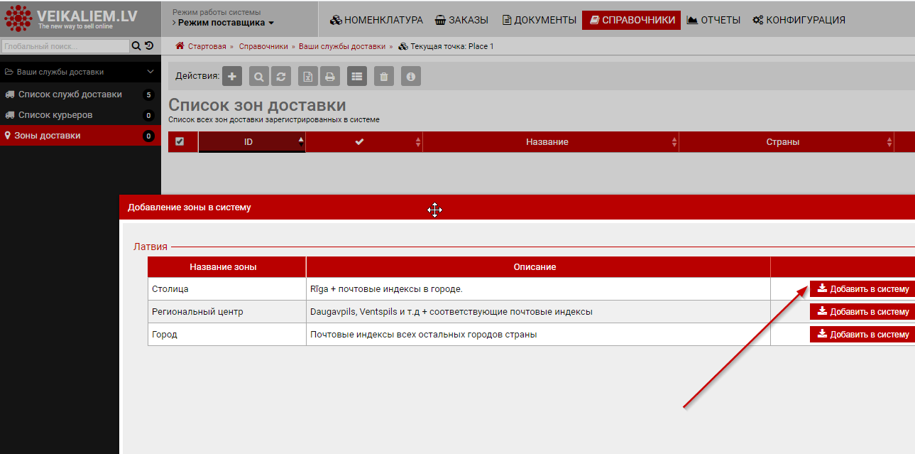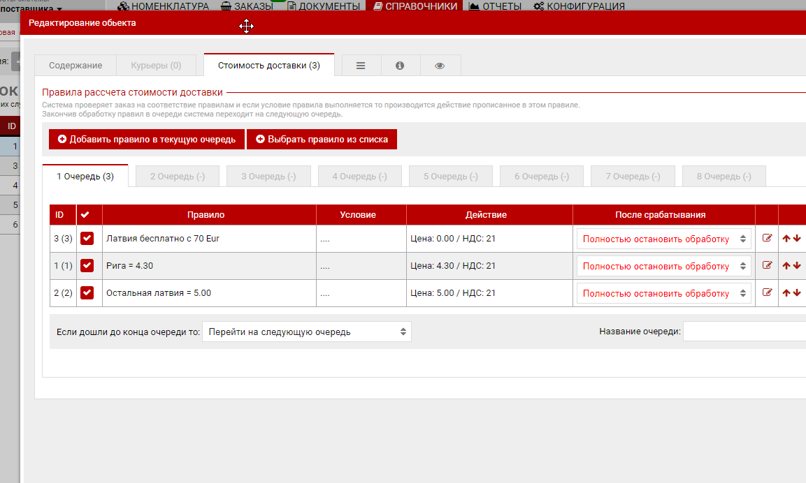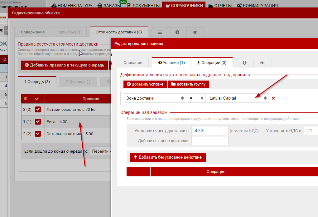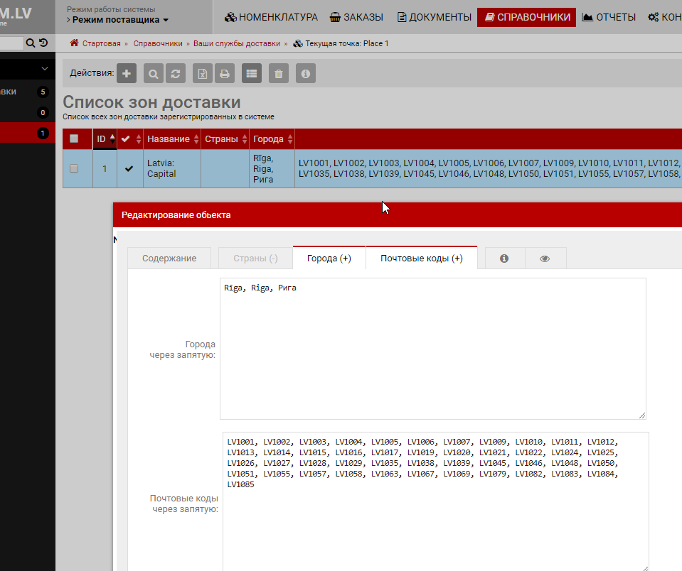 В примере ниже для рассчета стоимости доставки перевозчика VETPRO используется зона "Latvia: Capital" в которой перечислены почтовые индексы города Rīga а также