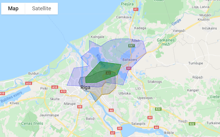 Рассмотрим классическое применение - 1 служба доставки, 3 зоны - центр города, город, окраины города.