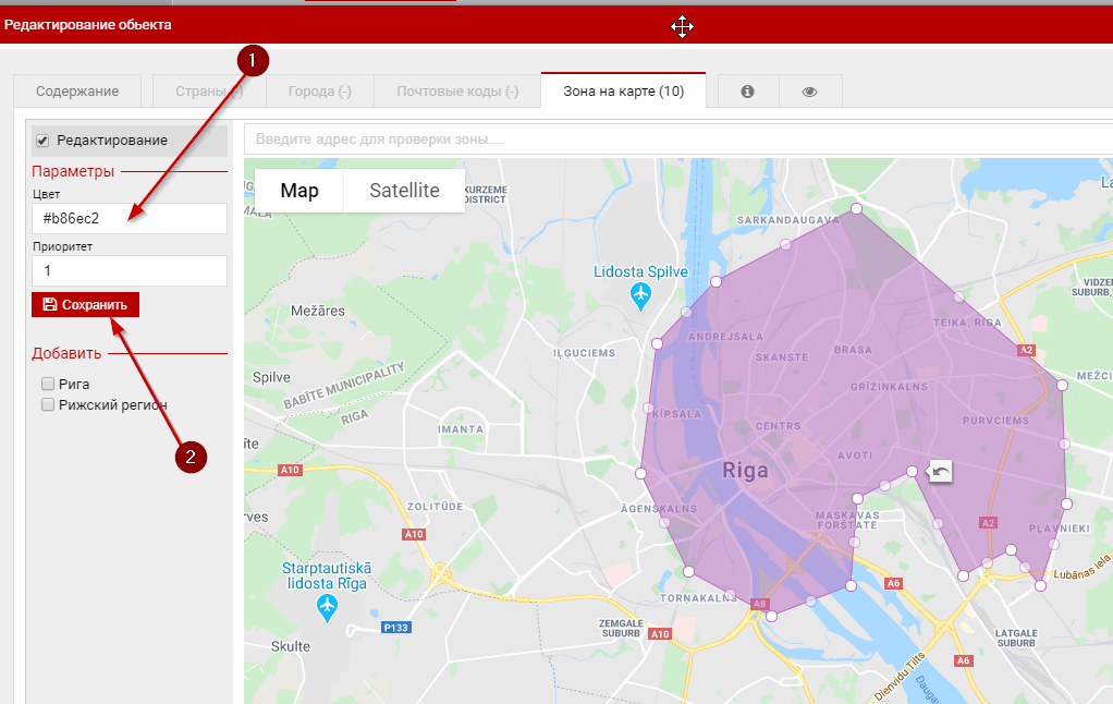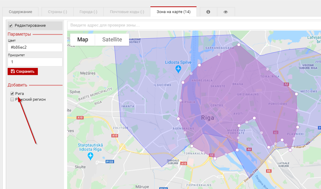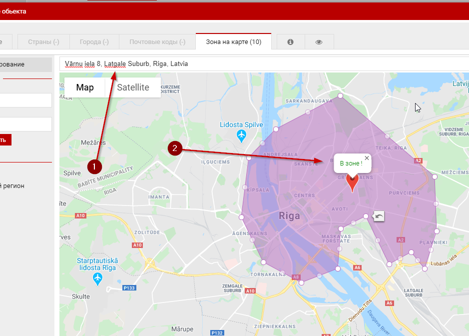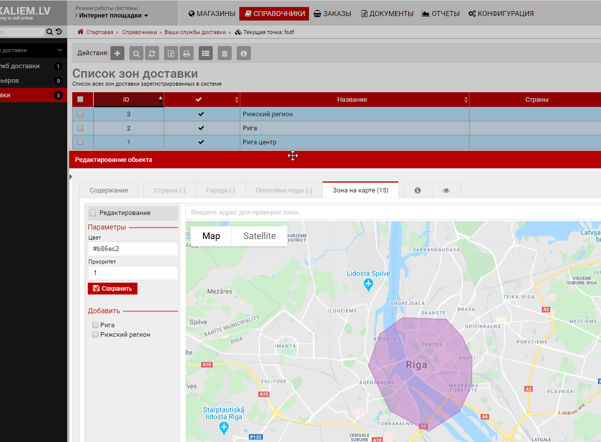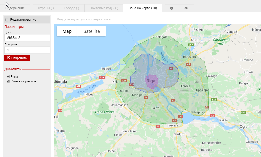 Зоны доставки на картеОдним из вариантов использования зон при рассчете доставки является механизм создания этих зон прямо на карте. Как это работаетПринцип идентичен работе обычных зон доставки. Отличие только в том что для определения относится ли адрес к зоне служат алгоритмы геолокации. Принципы работы зон » Создаем зоны