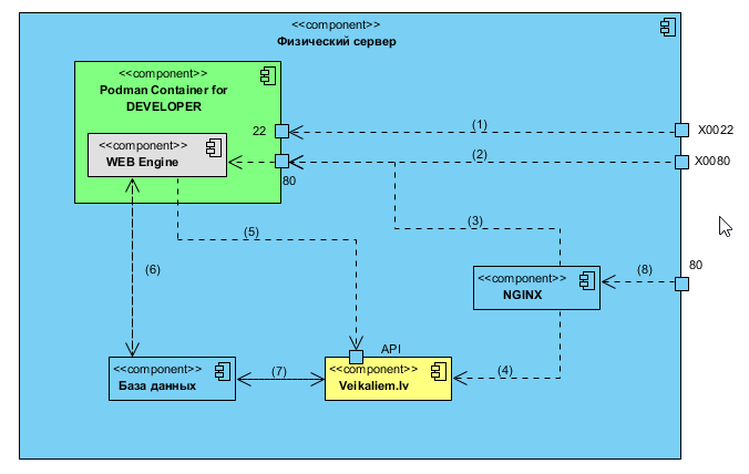Виртуальный сервер разработчикаДля каждого клиента который самостоятельно работает с кодом сайта мы разворачиваем отдельную мини виртуальную машину на podman контейнере и даем к ней доступы. Что получеает разработчик: