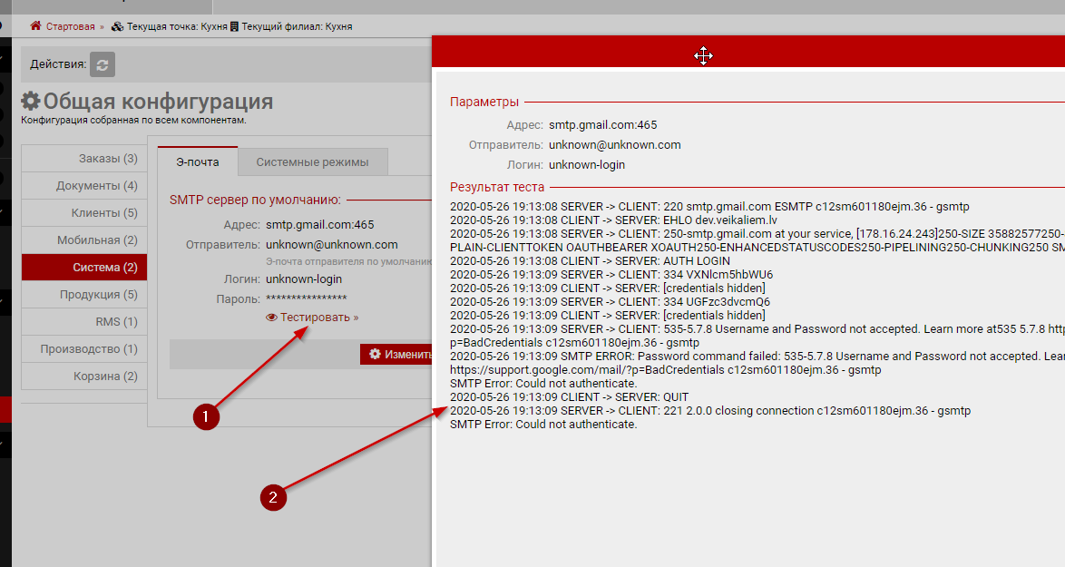 Отсылка э-почтыРанее мы отсылали сообщения через единый Postfix который через специальные заголовки сообщений определял отправителя и переключался на нужный SMTP сервер. Управление Postfix-ом с нужной нам гибкостью напоминало изьятие гланд через пятую точку поэтому было решено написать нативный обработчик очереди сообщений. По умолчаниюПо умолчанию (без конфигурации SMTP клиентом в своей системе) сообщения отсылаются через наш SMTP. Мы не несем никакой ответственности за получение ваших писем адресатом. Как правило у любой фирмы есть свой почтовый сервер и отвечающая за него IT персона, поэтому самый правильный способ - использовать SMTP сервер клиента. Конфигурация