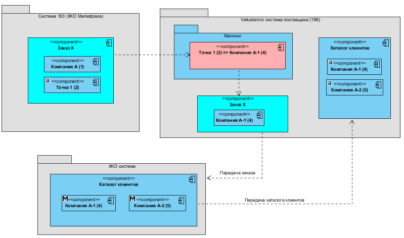 Маппинг точек и компанийПроблематикаВ IIKO у компаний-клиентов нет точек доставки как класса. На данный момент если у компании есть 10 точек с которых нужно собирать заказы то в IIKO создается 10 компаний-клиентов. При работе с MarketPlace это вызвает определенный ряд проблем и специфичных конфигураций которые описаны ниже. Прием заказа с MarketPlace