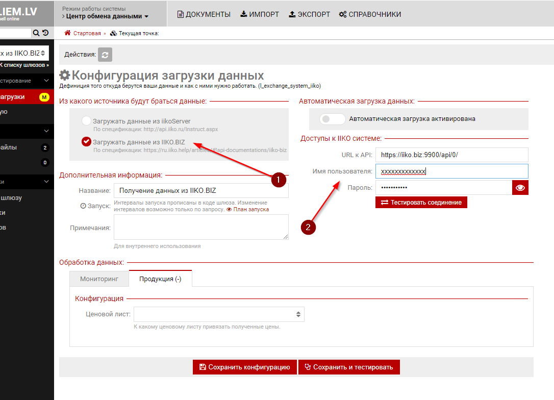 Интеграция с IIKO.BIZПредварительные условияПеред тем как создавать интеграцию с IIKO.BIZ нужно создать обычный шлюз импорта данных из IIKO.Server и загрузить данные. Конфигурация