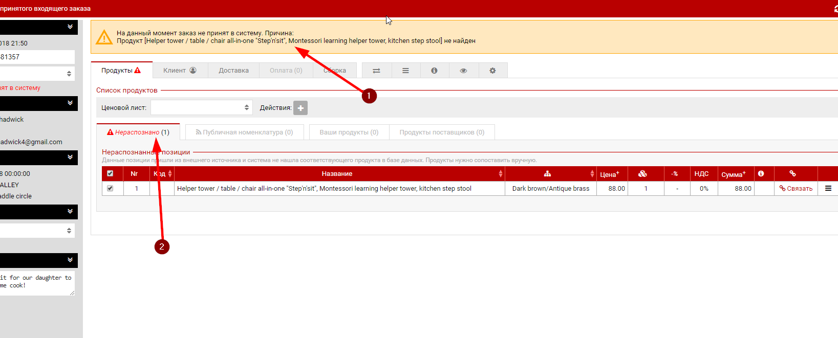 Когда заказ загружается из ETSY то загружаются и его позиции. Для корректной обработки заказа и учета остатков системе должно быть понятно