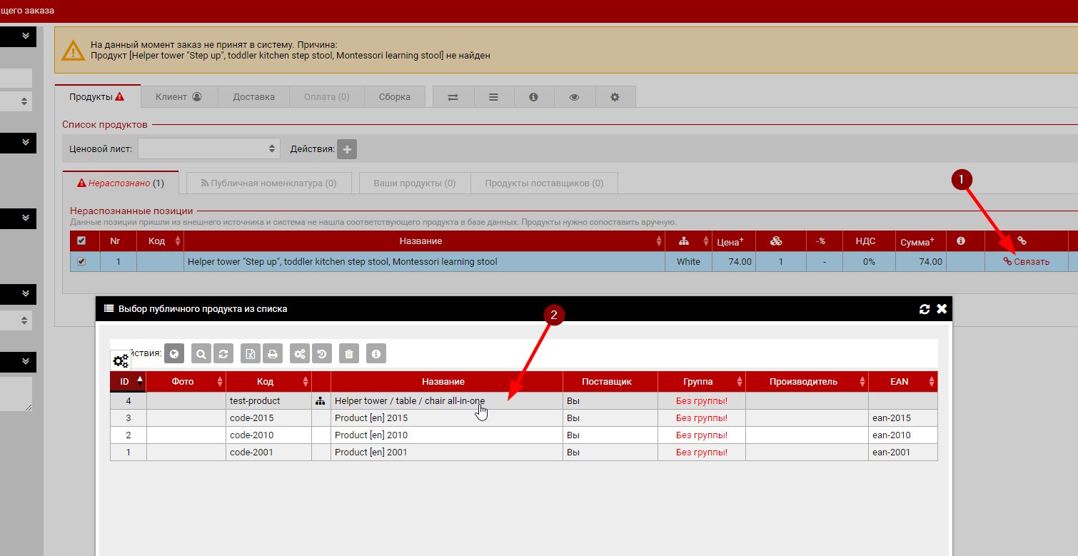 какие продукты заказа каким продуктам в системе соответствует. |