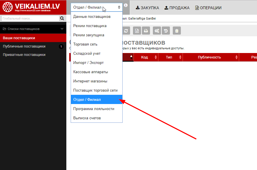 Выбор точкиВыбирается точка (филиал) в котрой вы в данный момент работаете. Если хотите увидеть все данные по всем точкам (если есть доступ) то не выбирайте никаую точку. Просмотр запросов на сборку