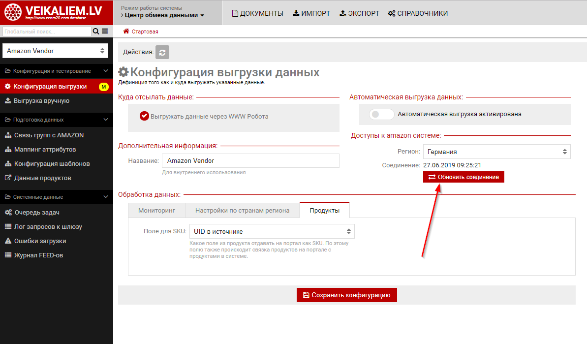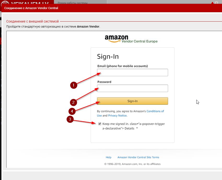 Конфигурация VeikaliemСоединиени системы с Амазоном происходит в конфигурации шлюза. Так как Amazon использует Captcha и верификацию через SMS то вам нужно пройти авторизацию вручную через нашу систему: Поддержание соединения: