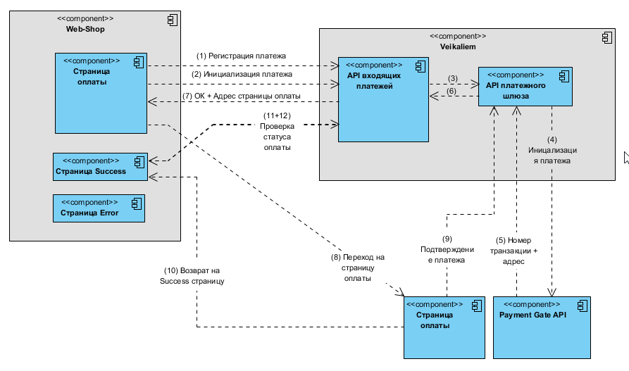 Использование на Интернет магазинеПринцип работы интеграции платежной системы с интернет-магазином можно представить следующей схемой (кликните для увеличения): КонфигурацияДля реализации данной схемы нужно создать на Veikaliem.lv импортный шлюз для регистрации заготовок платежей которые затем пересылаются в платежную систему. Papildus: šī sadaļa satur slēptu (iespējams, tehnisku) informāciju, kas ir pieejama tikai projekta personālam. Piekļūt šai sadaļai ir iespējams tikai ar noteiktām IP adresēm.