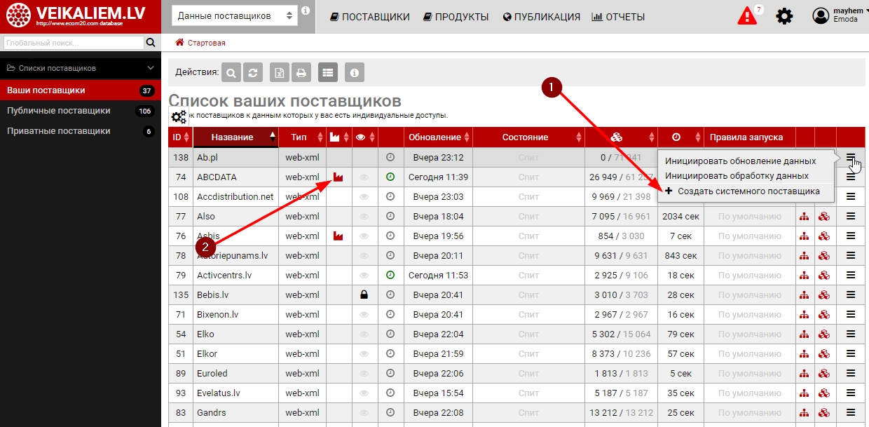 Интеграция с Grabber.veikaliem.lvНесмотря на то что grabber.veikaliem.lv встроен в основной интерфейс системы как отдельный режим на самом деле это совершенно отдельная система которая занимаетя получением данных из различных источников. Чтобы получать данные из нее в свою veikaliem.lv систему как данные вашего поставщика нужно нужно произвести определенные манипуляции. КонфигурацияЕсть два способа настройки. Классический через создание поставщика и шлюза импорта либо быстрый вариант который сделает все самостоятельно. Быстрая конфигурация