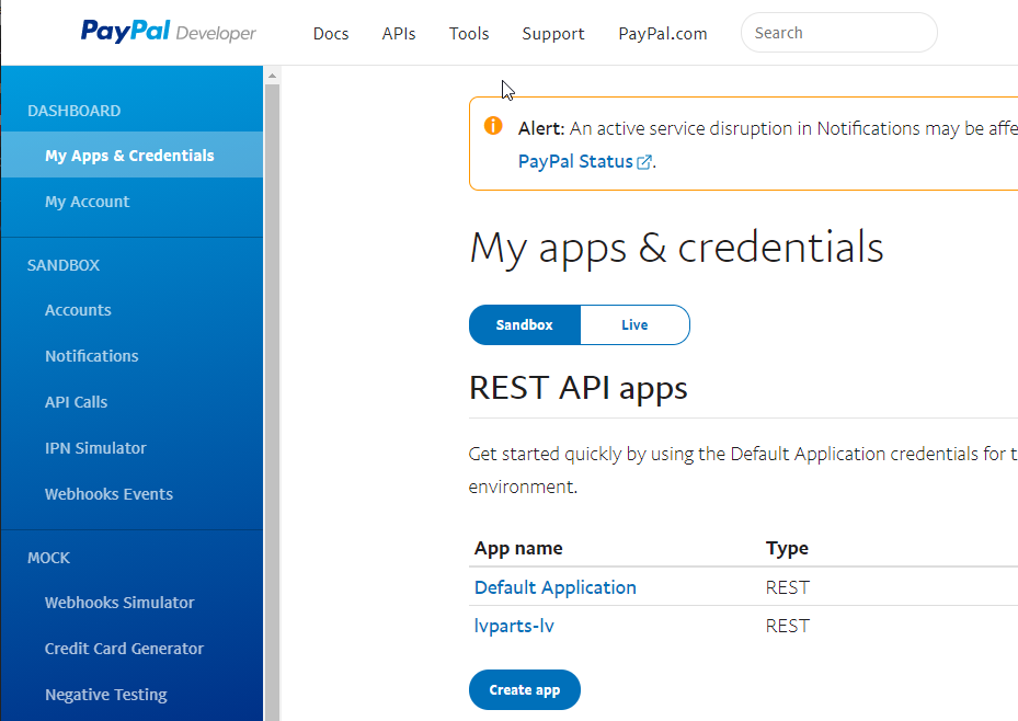 Со стороны PayPal вся работа происходит через Dashboard: https://developer.paypal.com/developer/applications/