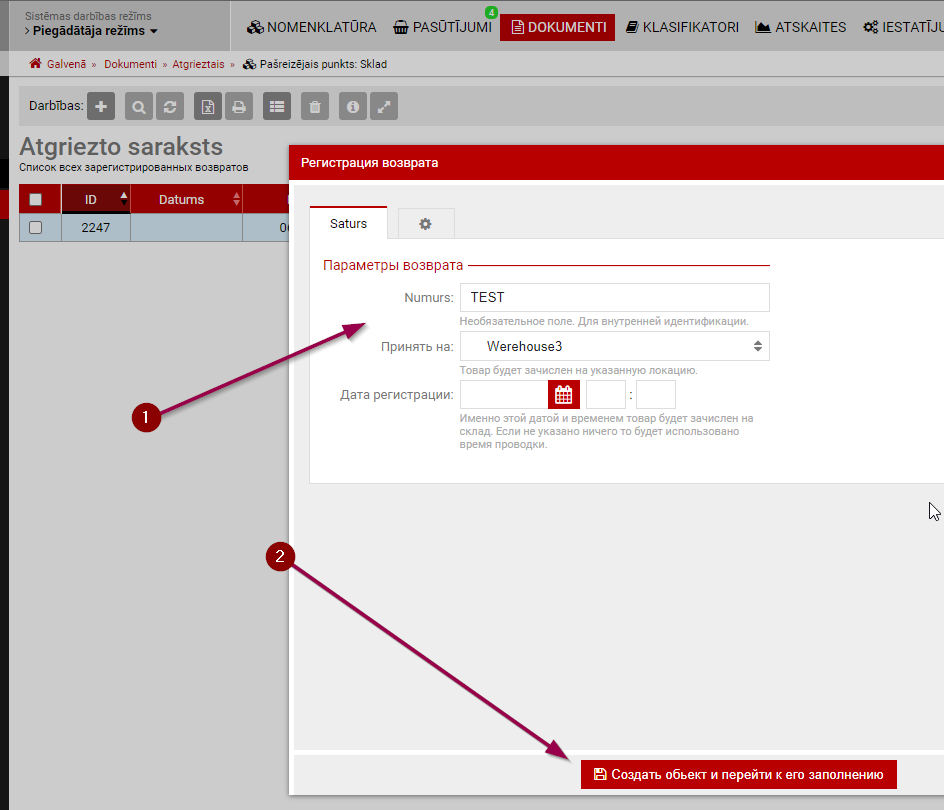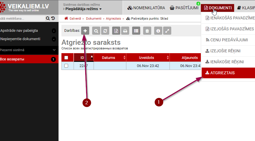 Чтобы оформить возврат в системе должна существовать продажа (реализация) на основе которой и будет возврат. Под продажей мы подразумеваем либо чек либо